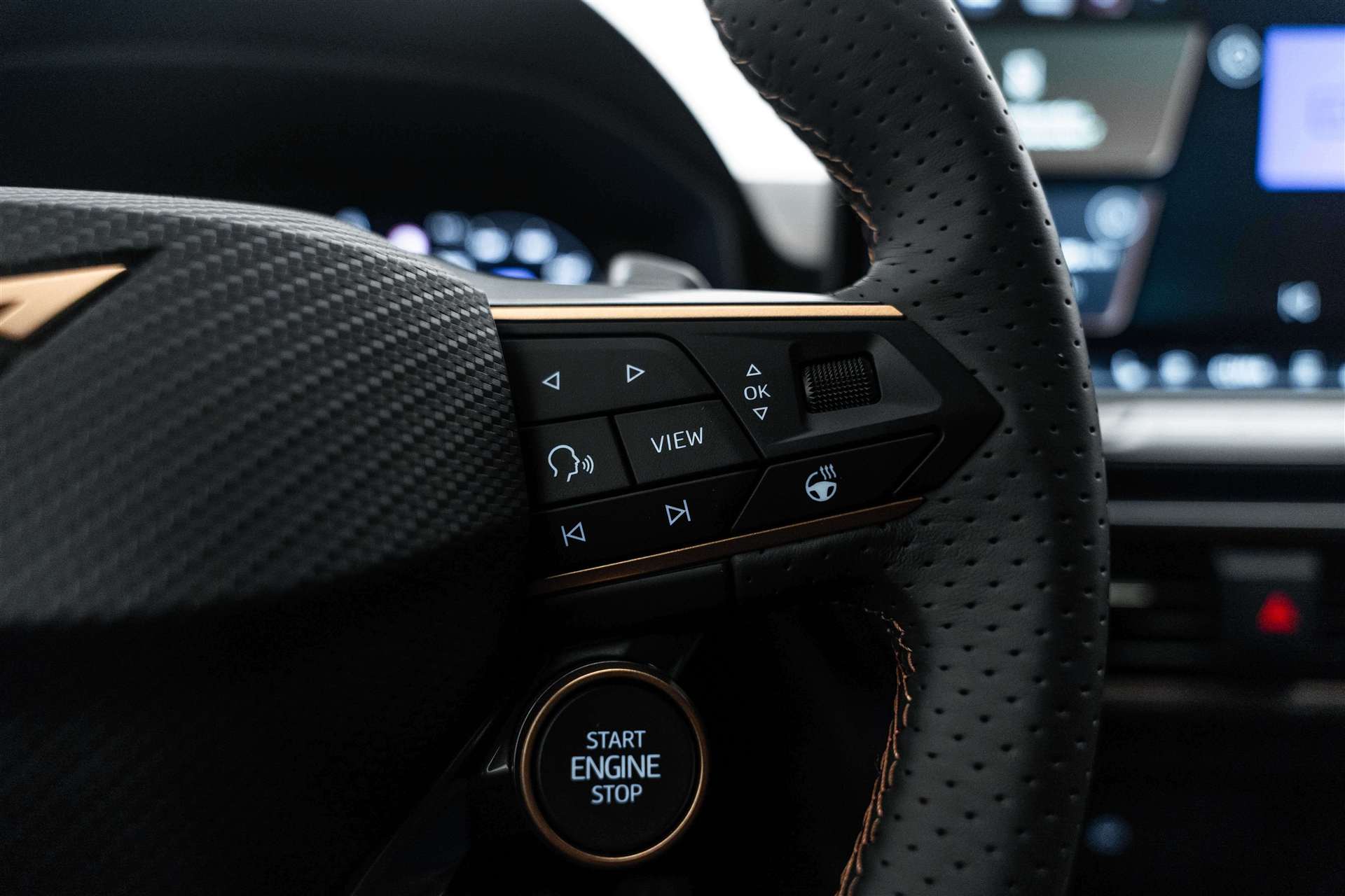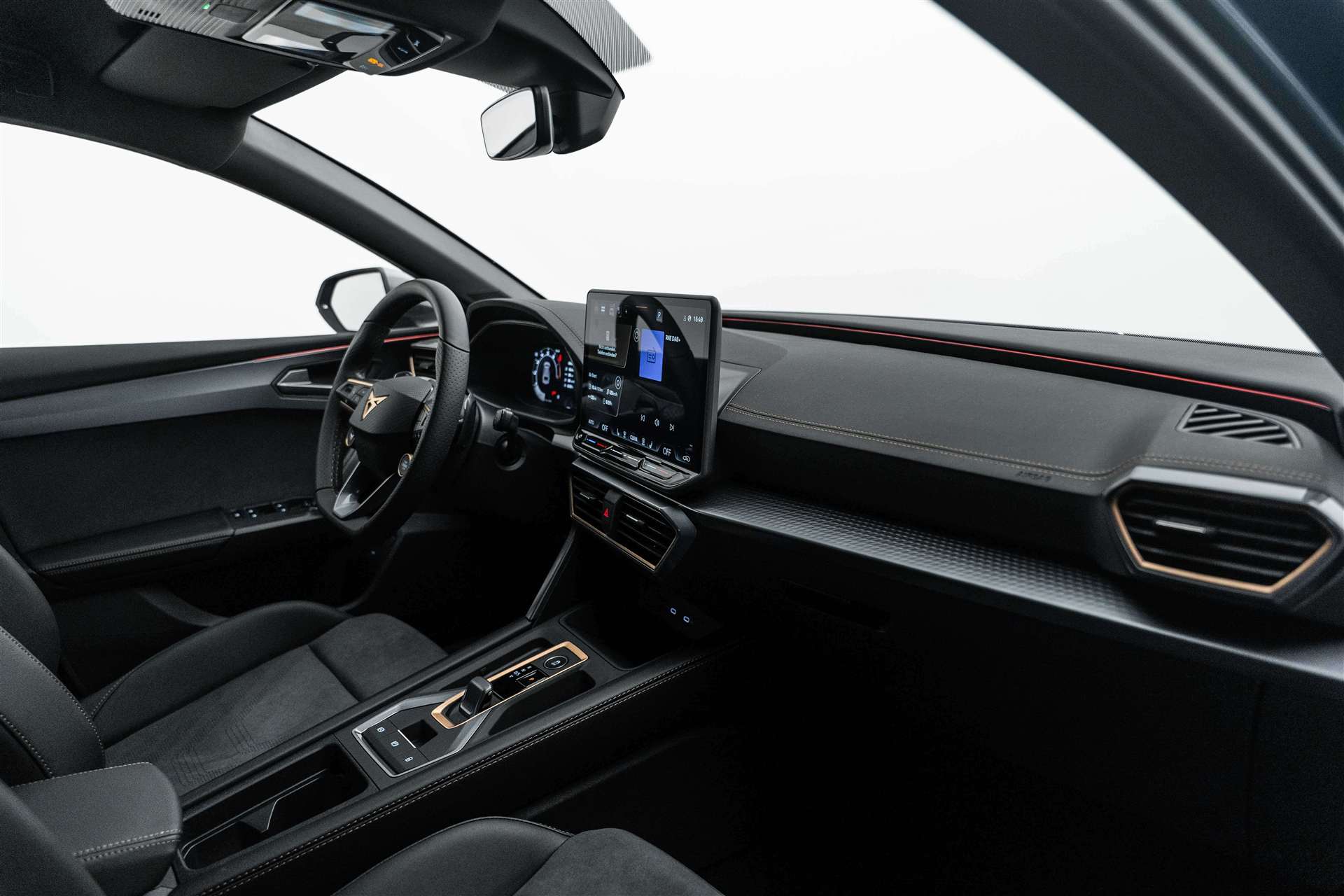 Abgedunkelte Scheiben ab B-Säule hinten, ABS, EBV elektronische Bremskraft-verteilung, Airbag: Airbag Beifahrer deaktivierbar, Airbag: Airbag Fahrer und Beifahrer, Airbag: Seitenairbags vorne mit Kopfairbag und Interaktionsairbag vorne, Alarmanlage mit Innenraumüberwachung, Allradantrieb permanent, Assist: Aufmerksamkeits- und Müdigkeitserkennung (ADA), Assist: Ausweichunterstützung / Abbiegeassistent, Assist: Automatische Distanzregelung ACC, Assist: Einparkhilfe vorne und hinten, Assist: Elektronische Parkbremse mit Auto Hold Funktion, Assist: Lane assist (Spurhalteassistent), Assist: Multifunktionskamera, Assist: Multikollisionsbremse, Assist: Prädiktive Speedlimiter, Assist: Regen-/Lichtsensor, Assist: Rückfahrkamera, Assist: Tempomat, Assist: Traction Control (TCS), Assist: Traffic sign recognition (Verkehrszeichenerkennung), Aussenspiegel elektrisch einstell-, beheiz- und einklappbar mit Memory -Funktion, CUPRA Drive Profile mit "driving experience button" Comfort, Performance, Drift, Individual, Dachhimmel Schwarz, Dekor: Dekorblenden in Copper, Dekor: Dinamica Ambiente, Dreipunkt-Automatiksicherheitsgurte auf allen Plätzen, Elektrische Fensterheber vorne und hinten mit Komfortschaltung und Einklemmschutz, ESC mit EBA, DSR und Reifendruckkontrolle, Fahrwerk: Adaptive Fahrwerksregelung DCC, Full Digital Cockpit, Fussmatten vorne und hinten, Getriebe: 7-Gang DSG, Heckklappe elektrisch öffnend "Virtual Pedal", Heckscheiben-Wisch-/Waschanlage mit Intervall, Innenspiegel automatisch abblendbar, Klima: 3-Zonen Climatronic mit Fondraumbedienung, Lackierung: Uni-Lackierung, LED-Innenraumbeleuchtung mit Ambientebeleuchtung Smart Wraparound "Multicolor", Lenkrad: Supersportlenkrad mit Start-/ Drive Profile-Knopfsystem und Schaltwippen, beheizbar, Licht: Coming Leaving Home Funktion, Licht: Drittes Bremslicht, Licht: Durchgehende Full LED-Heckleuchten, Licht: Dynamische LED-Blinker, Licht: Fernlicht-Assistent, Licht: LED Heckleuchten mit beleuchtetem 3D CUPRA Logo, Licht: LED-Nebelscheinwerfer mit Cornering-Funktion, Licht: LED-Scheinwerfer für Abblend- und Fernlicht, Licht: LED-Tagfahrlicht, Licht: Leuchtweitenregulierung, Licht: Nebelschlussleuchte, Media: 12,9" Infotainment (MIB3), Media: 2 USB C Anschlüsse hinten und vorne, Media: 6 Lautsprecher, Media: CUPRA Connect Remote & Access, Media: CUPRA Connect Safety & Services, Media: CUPRA Connectivity Box, Media: CUPRA FullLink, Media: DAB+ (Digital Audio Broadcasting), Media: Mobiltelefon Freisprechanlage Bluetooth, Media: Sprachsteuerung, Netztrennwand, Paket: DYNAMIC DESIGN, Paket: EDGE, Pyrotechnische Gurtstraffer und Gurtkraftbegrenzer vorne, Räder: Alufelgen 8J x 19", "POLAR" Machined in Sport Black Silver, Räder: Reifenreparatur-Set (Tire Fit), Schlüsselloses Schliess- und Startsystem (KESSY Advance), Servolenkung mit geschwindigkeitsabhängiger Lenkkraftunterstützung, Sicherheitsgurtkontrolle für alle Sitze, Sitze: 2 verstellbare Kopfstützen vorne und 3 hinten, Sitze: CUPRA Sport Schalensitze in Dinamica "Black/Blue", Sitze: Fahrer- und Beifahrersitz mit Lendenwirbelstütze, Sitze: Fahrersitz elektrisch einstellbar mit Memory-Funktion, Sitze: Geteilt abklappbare Rücksitzlehne 1/3 - 2/3, Sitze: Kindersitzverankerung ISOFIX hinten, Sitze: Kopfstützen vorne (integrierte), Sitze: Lendenwirbelstütze Fahrerseite elektrisch einstellbar, Sitze: Lendenwirbelstütze in den Vordersitzlehnen, Sitze: Mittelarmlehne hinten, Sitze: Mittelarmlehne vorne, Sitze: Sitzheizung für Vordersitze, getrennt regelbar, Sonnenblende Fahrer und Beifahrerseite, Stopp - Start- und Rekuperationssystem, Variabler Ladeboden, Vollverzinkte Karosserie, Wärmeschutzverglasung, Wegfahrsperre elektronisch, Zentralverriegelung mit Funkfernbedienung, 2 Funkschlüssel