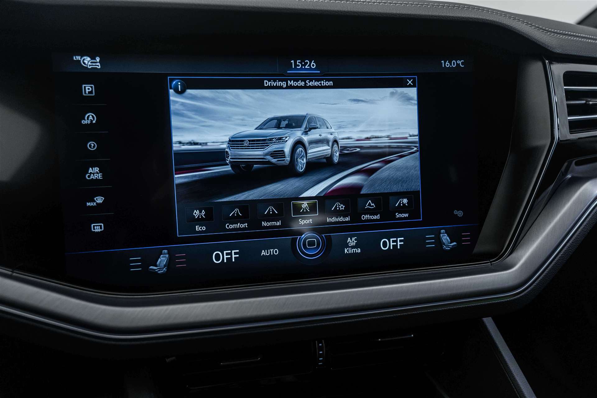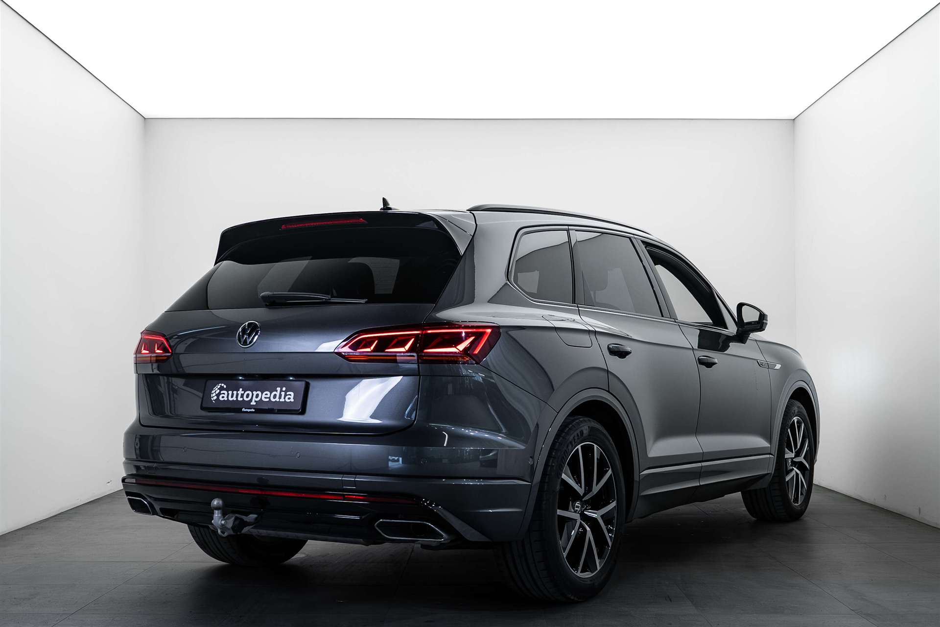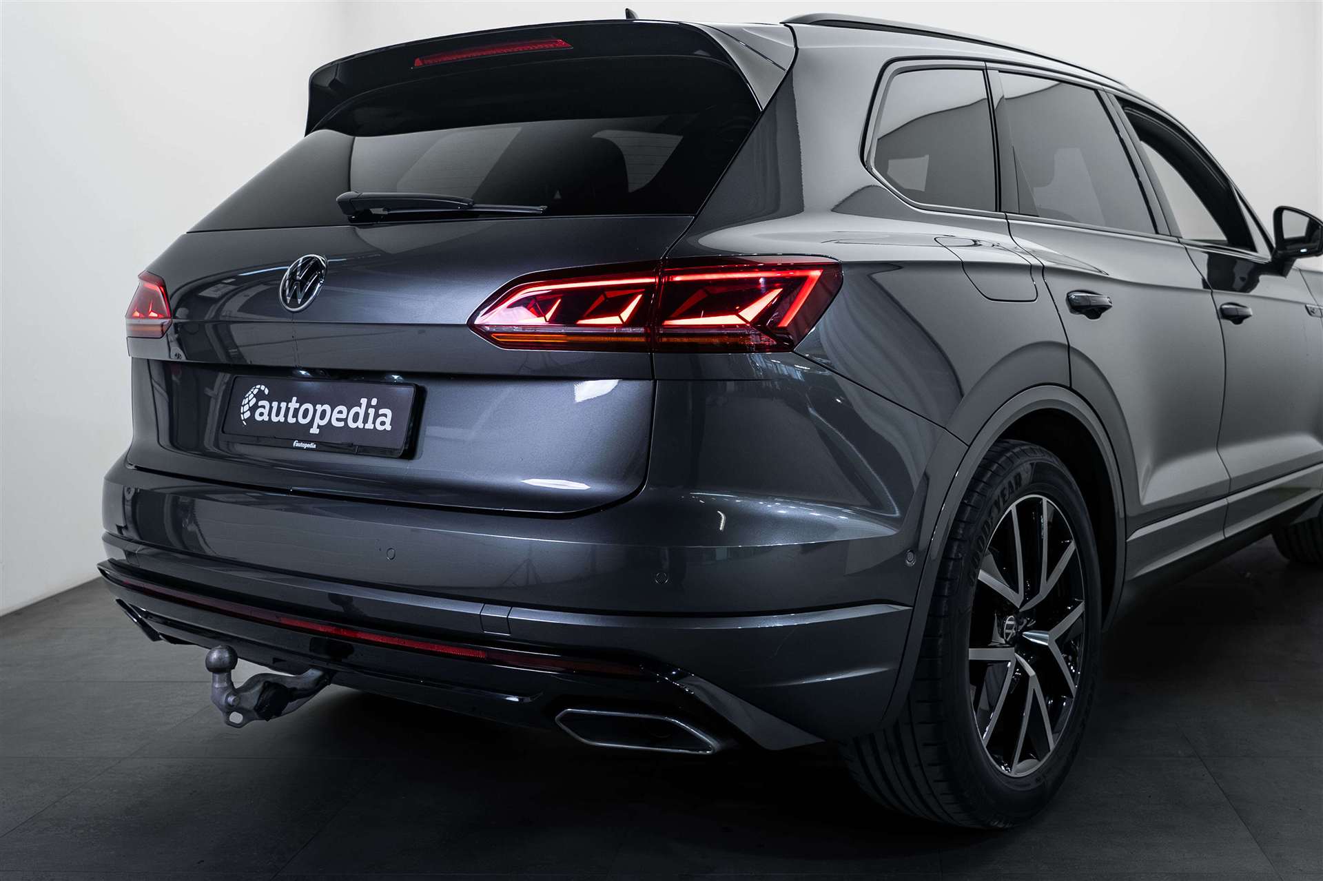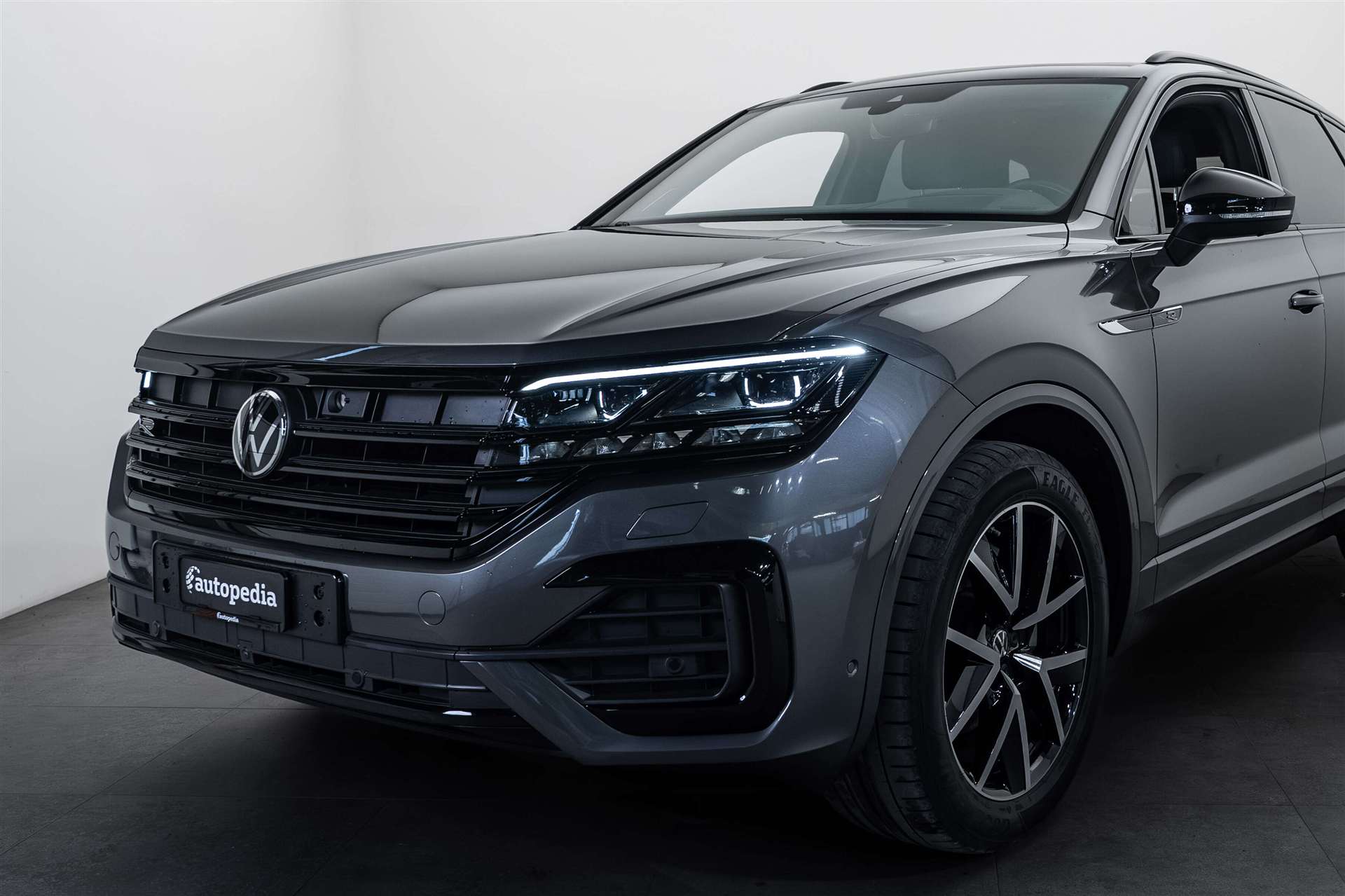 2 Becherhalter vorne, 4MOTION Active Control inkl. Fahrprofilauswahl, Ablagefach mit Deckel auf der Instrumententafel, Ablagefächer in allen Türen (vorne mit Halterung für 1,5-l-Flaschen), Ablagetaschen an den Rückseiten der Vordersitze, Airbag: Airbag Beifahrer deaktivierbar, Airbag: Airbag Fahrer und Beifahrer, Airbag: Kopfairbagsystem inkl. Seitenairbags vorne, Aktive Motorhaube, Ambientebeleuchtung (1-farbig weiss), Assist: Automatische Distanzregelung ACC (bis 210 km/h) inkl. Geschwindigkeitsbegrenzer (prädiktiv), Assist: Elektronische Parkbremse inkl. Auto-Hold-Funktion, Hill Hold Ext., Hill Climb Assist, Assist: Elektronisches Stabilisierungsprogramm mit Gegenlenkunterstützung, Assist: Müdigkeitserkennung, Assist: Multifunktionskamera, Assist: ParkPilot - akustische Warnsignale bei Hindernissen im Front- und Heckbereich, Assist: Spurhalteassistent Lane Assist, Assist: Umfeldbeobachtungssystem "Front Assist" mit City ]Notbremsfunktion und Fussgangererkennung, Assist: Verkehrszeichenerkennung, Aussenspiegel elektrisch einstell-, anklapp, und beheizbar, auf Fahrerseite abblendend,, Aussenspiegelgehäuse und Türgriffe in Wagenfarbe, Automatisches Sperrdifferenzial (Torsen Differential, Offroad), Bergan- und Bergabfahrhilfe, Blinkleuchten seitlich in die Aussenspiegel integriert, Bordcomputer, Bordwerkzeug, Chromleisten an den Seitenfenstern, Dachhimmel schwarz, Dachreling silber eloxiert, Dekor: Dekoreinlagen in Aluminium Silver Wave für Instrumententafel und Türverkleidungen, Design Endrohre trapezförmig, rechts und links in Chrom, Doppelton-Signalhorn, Dreipunkt-Automatiksicherheitsgurte hinten, aussen mit ECE-Label, Dreipunkt-Automatiksicherheitsgurte vorne mit Höheneinstellung und Gurtstraffer, Edelstahl-Pedalerie R-Line, Einstiegsleisten in Edelstahl, vorne mit R-Line-Logo, Fahrlichtschaltung automatisch, mit LED-Tagfahrlicht,Leaving home-Funktion und, Fehlbetankungsschutz, Fensterheber vorne und hinten elektrisch, Frontscheibe in Wärmeschutzglas, Garantie: Volkswagen Garantie+ (3 Jahre / 100000 km), Gepäckraumabdeckung, Getriebe: 8-Stufen-Automat sequentiell, Handschuhfach, mit LED-Beleuchtung und Kühlmöglichkeit, Heckscheibenheizung und Heckscheibenwischer, Innenleuchten im Fussraum vorne und hinten, Innenspiegel automatisch abblendbar, ISOFIX-Halteösen (Vorrichtung zur Befestigung von 2 Kindersitzen auf den Rücksitzen,, Karosserie verzinkt, Kennzeichenbeleuchtung in LED-Technik, Kindersicherung elektrisch für Türen hinten, vom Fahrersitz aus bedienbar, Klima: Frischluftansaugung mit Aktivkohlefilter, Klima: Klimaanlage Air Care Climatronic mit 2-Zonen-Klimatisierung, Kombi-Instrument mit elektronischem Tachometer, Kilometer- und Tageskilometerzähler, Komfortblinker (1x antippen = 3x blinken), Kontrollleuchten und Service-Intervallanzeige, Kraftstofftank mit 75 Liter Fassungsvermögen, Kühlerschutzgitter Chrome & Style, Kühlerschutzgitter mit R-Line Logo, Ladeboden eben hinten, Ladekantenschutz in Edelstahl, LED-Leseleuchten vorne und hinten, LED-Rückstrahler in den Türen vorne, Lendenwirbelstützen vorne pneumatisch einstellbar (4-Wege), Lenkrad: Lenkrad längs- und höhenverstellbar, Lenkrad: Multifunktions-Lederlenkrad (3 Speichen) mit Schaltwippen und Touchbedienung, beheizbar, Lenkrad: Multifunktions-Sportlenkrad in Leder, mit R-Line-Logo und Ziernähten in Kristallgrau,, Lenksäule mit Höhen- und Längseinstellung, Licht: LED-Scheinwerfer mit Schlechtwetterlicht und LED-Tagfahrlicht, Licht: Leuchtweitenregulierung dynamisch, Licht: Nebellichtverteilung, Licht: Nebelschlussleuchte, Licht: Rückleuchten in LED-Technik, Make-Up Spiegel beleuchtet in den Sonnenblenden, Media: Digitales Radio DAB+, Media: Navigationssystem ''Discover Pro'' inkl. Car-Net "Guide & Inform" Premium, Mittelarmlehne hinten, mit Becherhalter, Mittelarmlehne vorne, Mittelkonsole in schwarz glänzend / Silberoptik, Multifunktionsanzeige Premium, mehrfahrbiges 7-Zoll Display, Multikollisionsbremse 2.0 (Automatische Abbremsung bis zum Stillstand nach Kollision), Nichtraucherausführung: Ablagefach und 12-V-Steckdose anstelle Aschenbecher, Paket: R-Line Exterieur, Partikelfilter und Oxydationskatalysator, Polster: Sitzmittelbahnen und -wangeninnenseiten in Leder Vienna mit R-Line Logo, R-Line Flitzer Seite links/ rechts, Räder: Leichtmetallräder Sebring 8,5 J x 19, Volkswagen R, Räder: Leichtmetallräder Sebring 8,5 J x 19, Volkswagen R, Räder: Reifenkontrollanzeige, Räder: Tire Mobility Set (12-Volt-Kompressor und Reifendichtmittel), Radlaufblenden in Wagenfarbe, Regensensor, Scheibenbremsen vorne und hinten, Scheibenwaschdüsen vorn automatisch beheizt, Schwarz glänzender Diffusor mit verchromten Endrohrblenden, Security & Service, inkl. Notruffunktion, Servolenkung elektromechanisch, geschwindigkeitsabhängig geregelt, Sicherheitsoptimierte Kopfstützen vorne, Sitze: ergoComfort-Sitze vorne, Sitze: Rücksitzbank um 160 mm verschiebbar, Rücksitzlehne in der Neigung einstellbar, Sitze: Rücksitzbank und -lehne asymmetrisch teil-, längs verschieb- und klappbar; Mittelarmlehne, Sitze: Vordersitze elektrisch einstellbar (18-Wege), Sitze: Vordersitze heizbar, Start-Stopp System mit Bremsenergie-Rückgewinnung, Stossfänger in R-Line Styling, Stossfänger- und Türunterteile in Wagenfarbe, Stossfänger in R-Line Styling, Stossfänger- und Türunterteile in Wagenfarbe, Textilfussmatten vorne und hinten, Touareg-Schriftzug auf der Gepäckraumklappe, Tür und Seitenverkleidung in Kunstleder, Verbandtasche und Warndreieck, Volkswagen TopCare: Service, Wärmeschutzverglasung grün, seitlich und hinten, Warnton und -leuchte für nicht angelegte Gurte vorne und hinten, Wegfahrsperre elektronisch, Zentralverriegelung Keyless-Go, Zusätzlicher Tank für SCR (AdBlue 24 Liter)