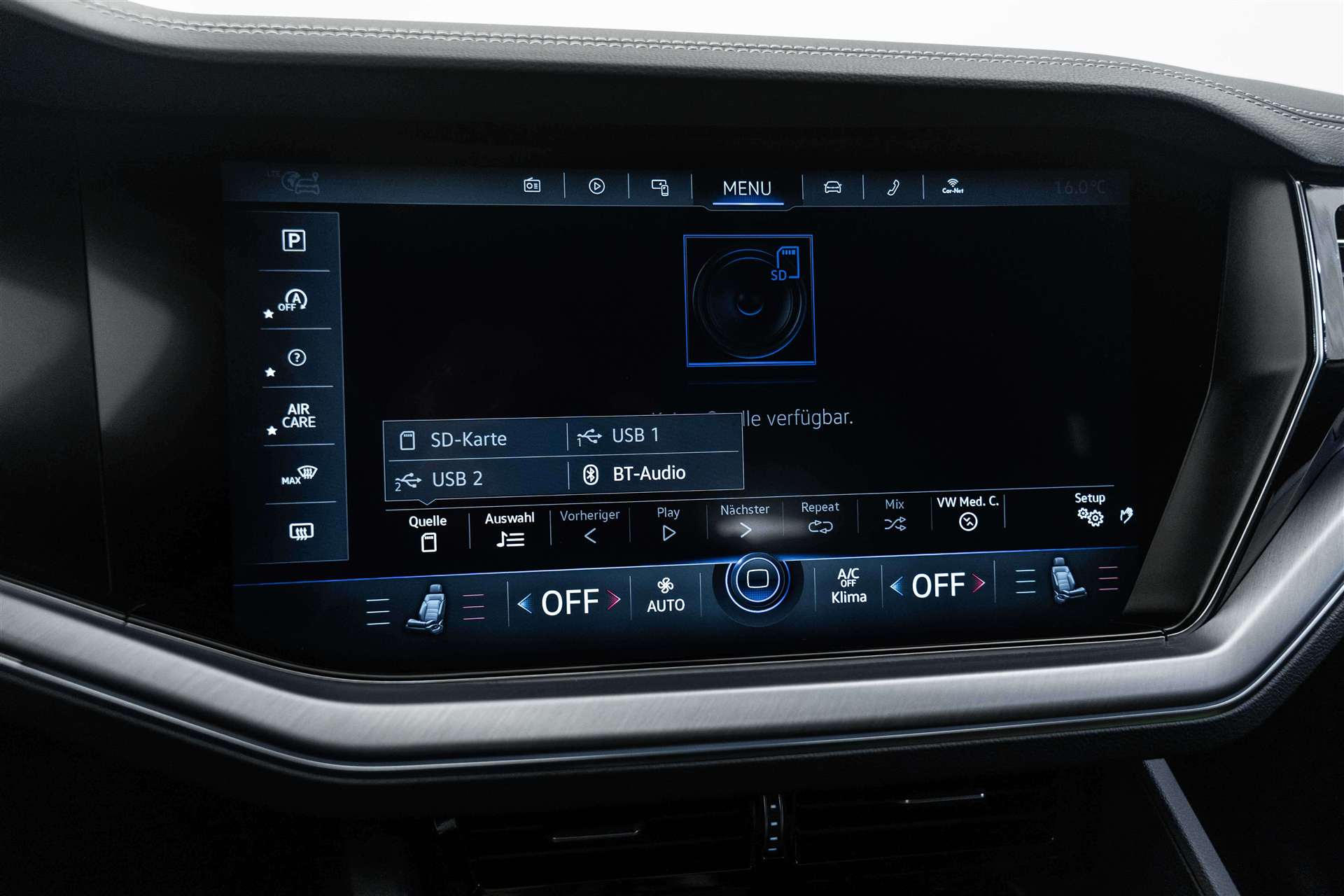 Sonnenschutzrollo für Seitenscheiben hinten, Seitenscheiben hinten und Heckscheibe in Verbundsicherheitsglas, 82% abgedunkelt, Volkswagen TopCare: MobilitätPLUS, Räder: Leichtmetallräder "Suzuka" 9,5 J x 21, Vokswagen R, schwarz glänzend in Verbindung mit R-Line, Räder: Leichtmetallräder "Nevada" 9 J x 20, Volkswagen R in Verbindung mit R-Line, Airbag: Seitenairbags zusätzlich für die äusseren Rücksitze, Paket: Offroad-Paket, Eigenes HMI mit Inszenierung Sand- / Schotter-Programm, Kraftstofftank mit 90 Liter Fassungsvermögen, Triebwerks-Unterschutz (Geländerobustheitspaket), Zusätzlicher Tank für SCR (AdBlue 24 Liter), Zwei Abschleppösen, Volkswagen TopCare: ServicePLUS, Frontscheibe geräuschdämmend und beheizbar, Paket: Memory-Paket Premium, Sitze: Memory-Funktion und Sitztiefeneinstellung für beide Vordersitze, Sitze: Sitzeinstellung elektrisch für beide Vordersitze, Spurwechselassistent 'Side Assist' inkl. Ausparkassistent, Lackierung: Uni-Lackierung, Räder: Reserverad, platzsparend 8 J x 20, Luftfederung, Räder: Leichtmetallräder Braga 9 J x 20, Volkswagen R, grau matt glanzgedreht, Paket: Ambientepaket farbig für R-Line, Ambientebeleuchtung mehrfarbig (30 Farben), Einstiegsleisten in Edelstahl, beleuchtet, vorn mit R-Line -Logo, Garantie: Volkswagen Garantie+ (5 Jahre / 100000 km), Lackierung: Perleffekt-Lackierung, Räder: Leichtmetallräder Nevada 9 J x 20, Volkswagen R, schwarz, Klima: 4-Zonen-Klimaanlage "Air Care Climatronic" mit Bedienungselement hinten, Paket: Parkpaket, Assist: Parklenkassistent Park Assist inkl. ParkPilot, Rückfahrkamera Rear View, Volkswagen TopCare: RäderPLUS, Paket: Connectivity Paket inkl. Telefonschnittstelle, Media: Mobiltelefonvorbereitung Business mit Aussenantennanbindung, rSAP,, Fahrwerk: Sportfahrwerk, Paket: Technik Paket, Schlüsselloses Schliess- und Startsystem "Keyless Access" ohne Safe-Lock, Luftfahrwerk und Allradlenkung, Zuziehhilfe elektrisch für Türen, Garantie: Volkswagen Garantie+ (4 Jahre / 100000 km), Zuziehhilfe elektrisch für Türen, Räder: Leichtmetallräder "Nevada" 9 J x 20, Volkswagen R, Paket: Black Style R-Line Exterieur, Räder: Leichtmetallräder Sebring 8,5 J x 19, Volkswagen R, Dachreling schwarz, Aussenspiegelgehäuse in Schwarz, Stossfänger R-Line mit schwarzen Lamellen im Kühlergrill, Schwarz glänzender Diffusor mit verchromten Endrohrblenden, Ohne abgedunkelte Heckleuchten, Zierleisten schwarz, Paket: Licht & Sicht-Paket für Memory-Pakete, Aussenspiegel mit Memory-Funktion, automatisch abblendbar, elektrisch anklapp-/einstell-/beheizbar, Schlüsselloses Schliess- und Startsystem "Keyless Access" mit Safe-Lock, Schlüsselloses Schliess- und Startsystem "Keyless Access" ohne Safe-Lock, Netztrennwand, Gepäckraummatte und Gepäcknetz für ergoComfort-Sitze, Räder: Leichtmetallräder Braga 9 J x 20, Volkswagen R, schwarz glanzgedreht, Gepäckmanagement-System inkl. Wendeladeboden, Lackierung: Perlmutteffekt-Lackierung, 230-Volt-Steckdose und Wechselrichter, Räder: Reifenfülldruck-Kontrollsystem, Sitze: Vordersitze mit aktiver Klimatisierung, Klima: Standheizung und -lüftung mit Funkfernbedienung und Vorwahluhr, Sitze: Vordersitze mit Massageprogrammen und aktiver Klimatisierung, Panorama-Ausstell-/Schiebedach mit Panoramadach hinten, Luftfahrwerk und Allradlenkung, Polster: Lederausstattung "Savona" (Kombination aus Leder und hochwertigem Kunstleder) für R-Line,, Media: Innovision Cockpit, Räder: Leichtmetallräder Braga 9 J x 20, Volkswagen R, schwarz glanzgedreht in Verbindung mit R-Line, Paket: Easy Open/Close Paket ohne Safe-Lock, Zuziehilfe für Gepäckraumklappe, Schlüsselloses Schliess- und Startsystem "Keyless Access" ohne Safe-Lock, Gepäckraumabdeckung mit elektrischer Öffnung, Lackierung: Metallic-Lackierung, Räder: Leichtmetallräder "Estoril" 9.5 J x 22, Volkswagen R, schwarz glanzgedreht, Kraftstofftank mit 90 Liter Fassungsvermögen, Volkswagen TopCare: Reifen, Räder: Leichtmetallräder "Suzuka" 9,5 J x 21, Vokswagen R, schwarz glänzend, Seitenscheiben hinten und Heckscheibe 82% abgedunkelt, Garantie: Volkswagen Garantie+ (5 Jahre / 150000 km), Diebstahlwarnanlage Plus mit Safe-Lock, Garantie: Volkswagen Garantie+ (4 Jahre / 120000 km), Gepäckraumklappe mit elektrischer Öffnung und Schliessung, Räder: Leichtmetallräder Braga 9 J x20, Volkswagen R grau matt glanzgedreht in Verbindung mit R-Line, Lackierung: Metalliclackierung Exklusiv, Paket: Parkpaket Professional inkl. Area View, 4 Kameras bilden das vollständige Auto ab, Assist: Parklenkassistent Park Assist inkl. ParkPilot, Head-Up Display, Garagentoröffner, Paket: Easy Open/Close Paket mit Safe-Lock, Schlüsselloses Schliess- und Startsystem "Keyless Access" mit Safe-Lock, Zuziehilfe für Gepäckraumklappe, Gepäckraumabdeckung mit elektrischer Öffnung, Anhängevorrichtung inkl. Anhängerrassistent 'Trailer Assist', Paket: Memory-Paket, Sitze: Memory-Funktion für Fahrersitz und Sitztiefeneinstellung, Sitze: Sitzeinstellung elektrisch für beide Vordersitze, Licht: IQ. Light - LED-Matrix Scheinwerfer, Volkswagen TopCare: Räder, Paket: Memory-Paket "Plus", Sitze: Memory-Funktion und Sitztiefeneinstellung für beide Vordersitze, Sitze: Sitzeinstellung elektrisch für beide Vordersitze, Nachtsichtfunktion 'Night Vision', Räder: Reserverad, platzsparend 6,5 J x 16, Stahl, Paket: Vision Paket, Head-Up Display, Licht: LED-Scheinwerfer mit Schlechtwetterlicht und LED-Tagfahrlicht, Licht: IQ. Light - LED-Matrix Scheinwerfer, Panorama-Ausstell-/Schiebedach mit Panoramadach hinten, Volkswagen TopCare: ReifenPLUS, Paket: Fahrassistenzpaket Plus inkl. Travel Assist, Assist: Kreuzungsassistent, Assist: Spurwechselassistent Side Assist, Assist: Erweiterter, proaktiver Insassenschutz Pre Crash, Assist: Emergency Assist 2.0, Assist: Stauassistent inkl. Baustellenassistent, Assist: Ausparkassistent, Gepäckmanagement-System in Verbindung mit Reserverad, Licht: Fernlichtregulierung Light Assist, Sitze: Sitzheizung f