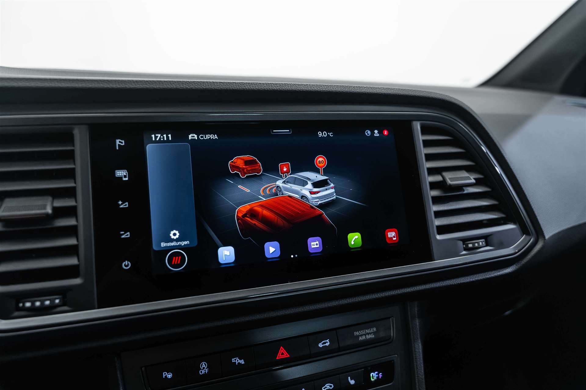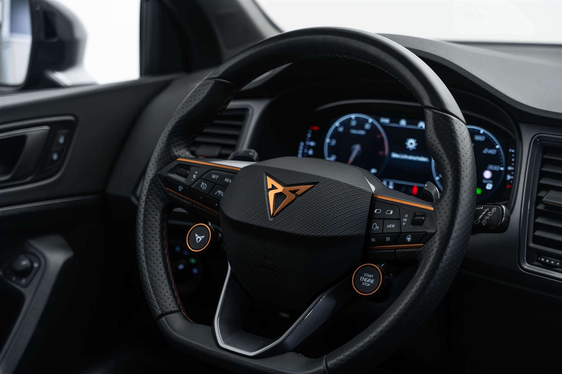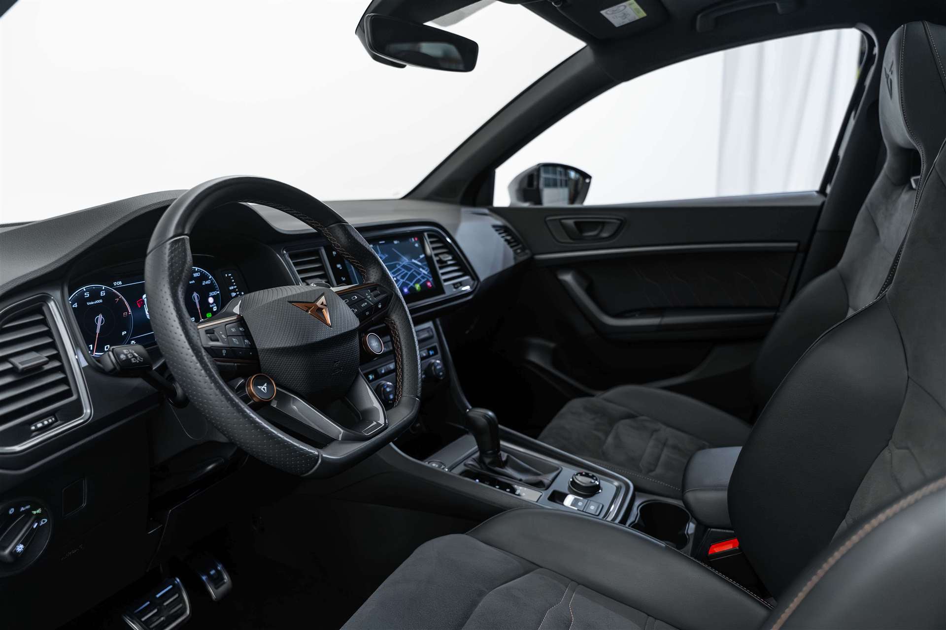 Paket: Fahrerassistenzpaket XL, Assist: Travel Assist, Assist: Side Assist (Spurwechselassistent), Assist: Exit Assist (Ausparkassistent), Assist: PreCrash Sicherheitssystem, Räder: Alufelgen 8J x 19", "EXCLUSIVE" 36/2 Machined Aerowheels in Sport Black Matt, Räder: Alufelgen 8J x 19", "EXCLUSIVE" 36/5 Machined Aerowheels in Copper, Panorama-Schiebe-/Ausstelldach, Räder: Ersatzrad platzsparend, Garantie: Cupra Hersteller-Garantieverlängerung für das 3., 4. und 5. Jahr / max.100000 km, CUPRA ServicePLUS, Räder: Alufelgen 8J x 19", "EXCLUSIVE" 36/1 Machined in Copper (245/40 R19), Polster: Lederausstattung mit Sport-Schalensitze vorne "petrol blue", Räder: Alufelgen 8J x 19", "EXCLUSIVE" 36/2 Machined in Silver (245/40 R19), Lenkrad: Supersportlenkrad mit Start-/ Drive Profile-Knopfsystem und Schaltwippen, Paket: Performance Brembo Bremssättel vorne, CUPRA Service, Netztrennwand, Lackierung: Metallic-Lackierung, Paket: Winterpaket 2, Athermisch beschichtete und beheizbare Windschutzscheibe, Heckklappe elektrisch öffnend und schliessend "Virtual Pedal", Media: BeatsAudio- Sound System - Subwoofer; 340 Watt Leistung 10 High-End-Lautsprecher, Variabler Ladeboden, Garantie: Cupra Hersteller-Garantieverlängerung für das 3. und 4. Jahr / max. 80000 km, Lackierung: Metallic-Lackierung, Paket: Elektrikpaket-, 230-Volt und 12-Volt Steckdose im Kofferraum, Räder: Alufelgen 8J x 19", "EXCLUSIVE" 36/3 Machined in Copper (245/40 R19), Assist: Trailer Assist, Polster: Lederausstattung mit Sportsitzen vorne "black", Paket: CUPRA Ateca Pack, Lenkrad: Supersportlenkrad mit Start-/ Drive Profile-Knopfsystem und Schaltwippen, Paket: Fahrerassistenzpaket XL, Sitze: Fahrersitz elektrisch einstellbar, Paket: Elektrikpaket-, Anhängevorrichtung (Einklappbar), Sitze: Fahrersitz elektrisch einstellbar